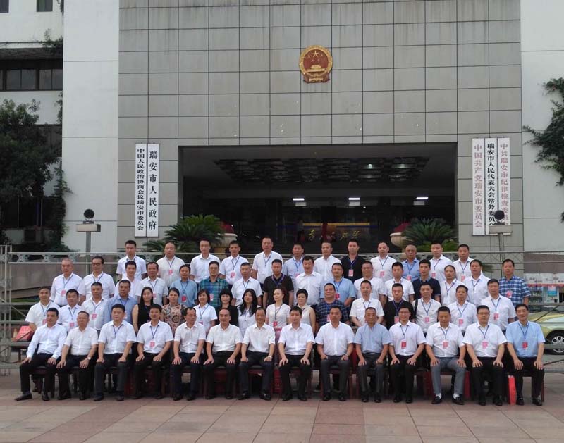 9月23號,瑞安市工商聯(lián)第十一次,總商會第六次會員代表大會在市政會議中心大會堂召開。省工商聯(lián)副巡視員黃強、溫州市工商聯(lián)副主席周有銘到會祝賀并講話,我市領導陳勝峰、葉世林、白一帆、方暉、陳世堯、林濟晚、陳榮臻、王建東參加會議。會議選舉了新一屆工商聯(lián)主席(總商會會長),我公司董事長項建忠當選為工商聯(lián)主席(總商會會長)。