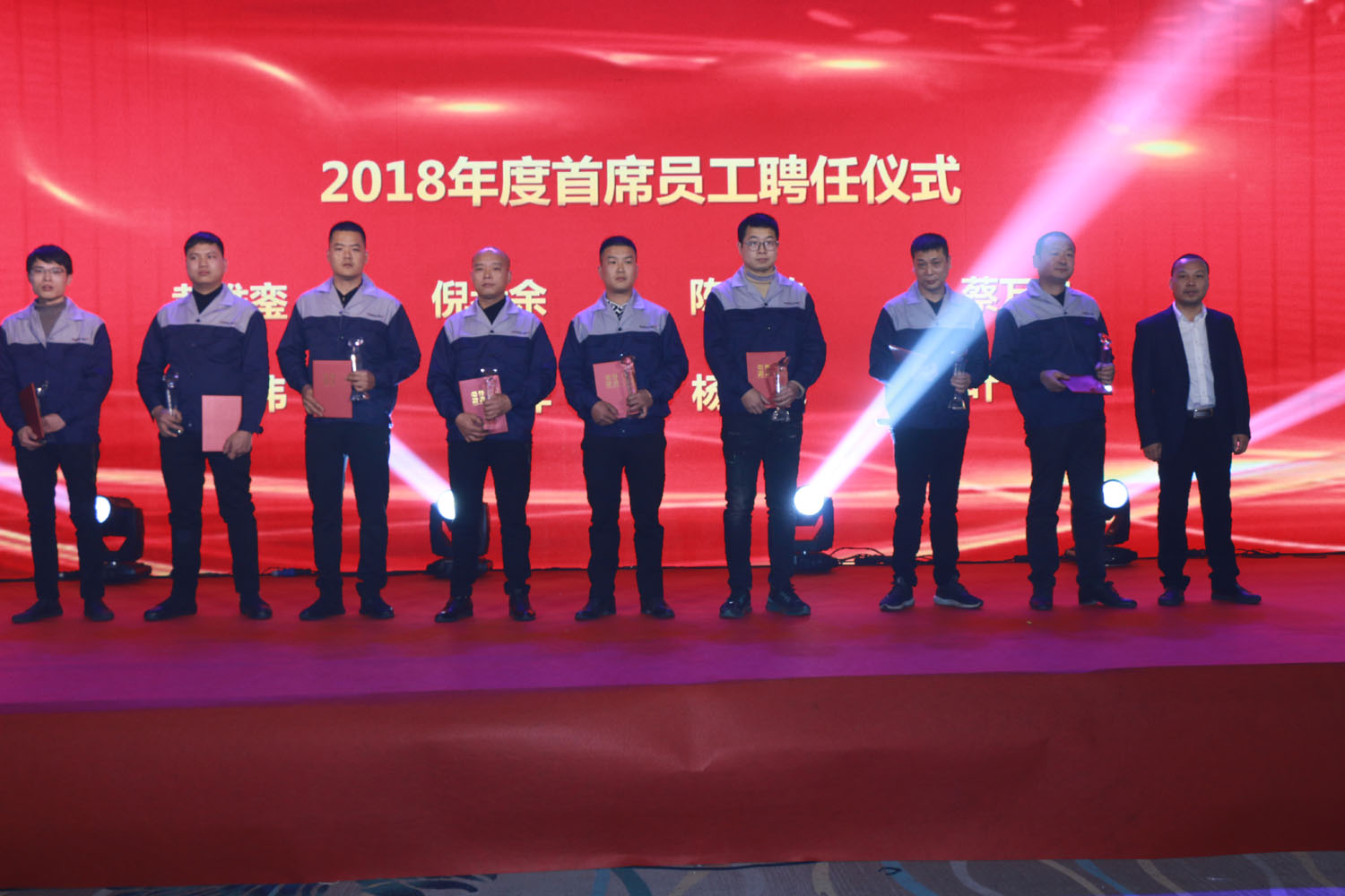 晚會(huì)對年度優(yōu)秀供應(yīng)商、優(yōu)秀員工、優(yōu)秀共產(chǎn)黨員和銷售冠軍進(jìn)行了表彰;聘任了2018年度15位員工為”首席員工”并頒發(fā)證書;首席員工代表徐崇燦 ,優(yōu)秀員工代表胡廣兵做了典型發(fā)言。